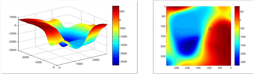 - Gráfico 3-D. El eje x representa una entrada, el eje Y otra entrada a optimizar y el eje Z la salida.